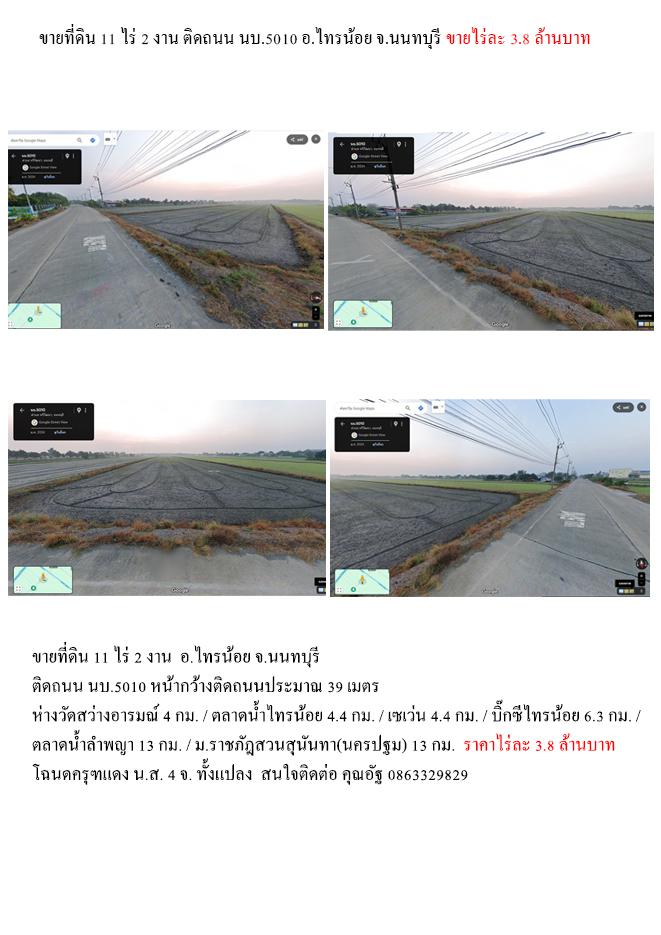 ขายที่ดินติดถนน นบ.5010 ขนาด 11ไร่ 2งาน ต.ไทรน้อย อ.บางบัวทอง จ.นนทบุรี