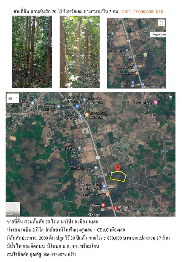 ขายที่ดิน สวนต้นสัก 20 ไร่ ต.นาโป่ง อ.เมือง จ.เลย