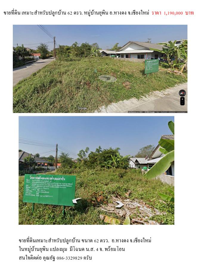 ขายที่ดินเหมาะสำหรับปลูกบ้าน ขนาด 62 ตรว. อ.หางดง จ.เชียงใหม่