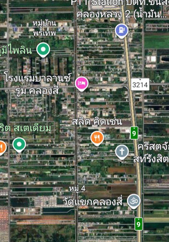 ขายที่ดินคลองสี่ ใกล้ถนนคลองหลวง ถนนเลียบคลองสี่ 2 ไร่ 3 งาน 86 ตรว.