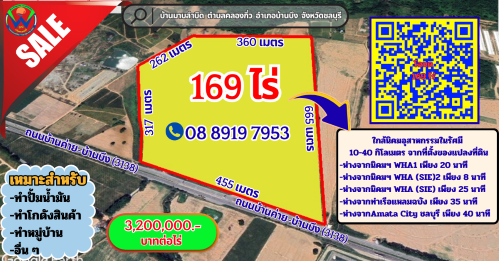 169 ไร่ ติดถนน 455 เมตร