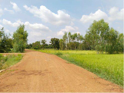 ที่ดินติดถนนลาดยาง หน้ากว้างด้านติดถนนประมาณ 112 เมตร ยาวประมาณ 288 เมตร ด้านหลังกว้างประมาณ 125 เมตร