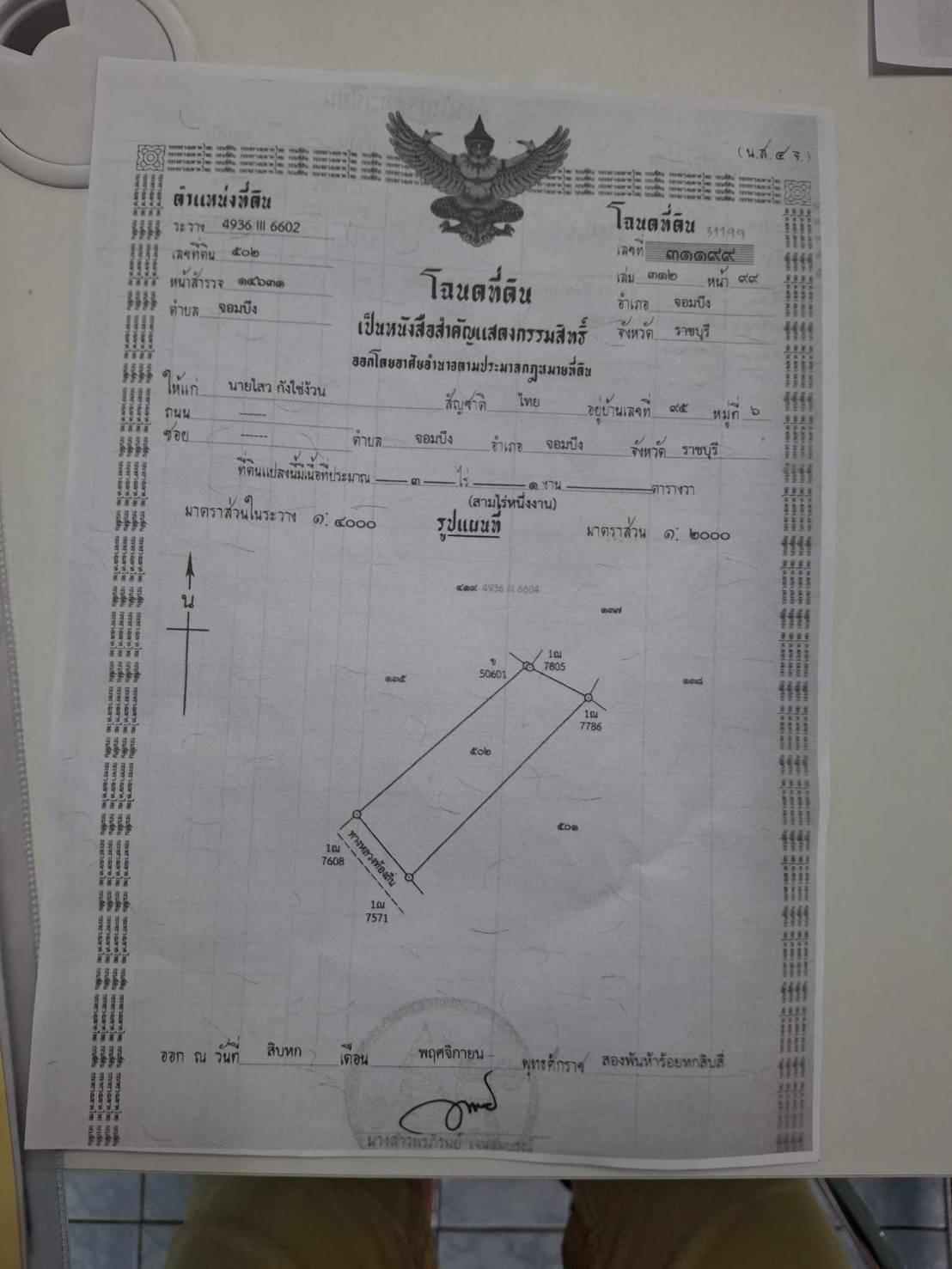 โฉนด 3 ไร่ 1 งาน ต.จอมบึง อ.จอมบึง จ.ราชบุรี
