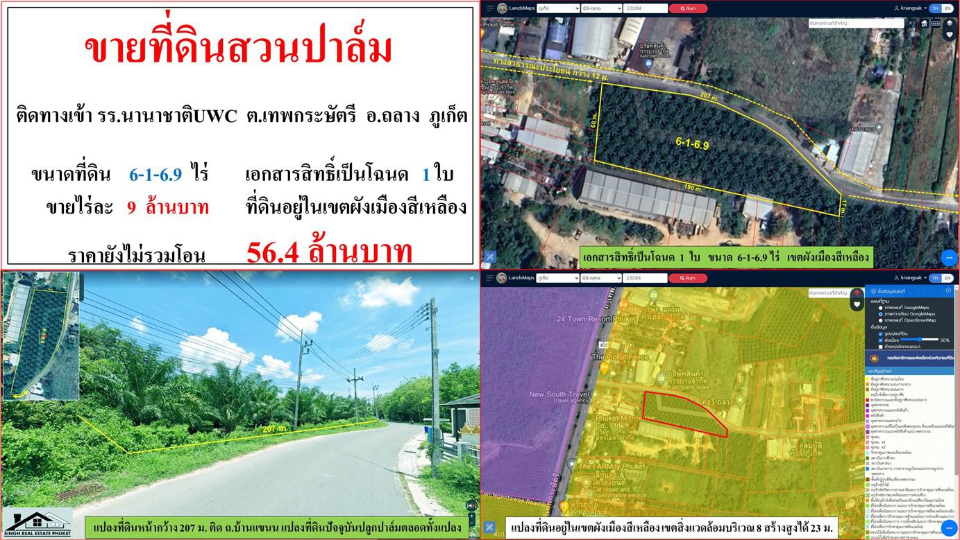 ขายที่ดินสวนปาล์ม ขนาด 6-1-6.9 ไร่ ติดทางเข้า รร.นานาชาติ UWC ต.เทพกระษัตรี อ.ถลาง ภูเก็ต