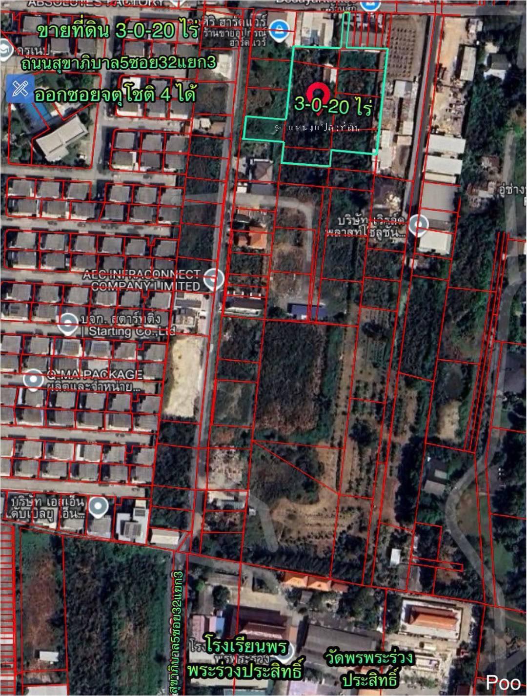 R69-092ขายที่ดินสุขาภิบาล5. ที่ดิน 3-0-20 ไร่ ถนนสุขาภิบาล 5 ซอย32แยก3 ซอยข้างโรงเรียนพรพระร่วงประสิทธิ์ สามารถเดินทางออกซอยจตุโชติ 4 ถนนจตุโ