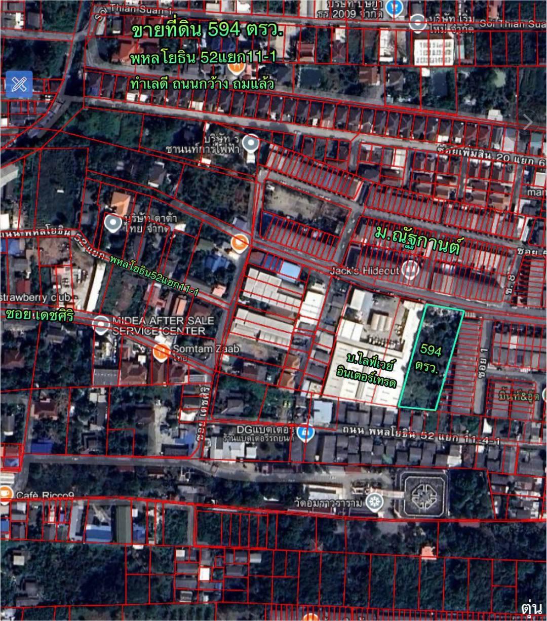 R68-068ขายที่ดิน594 ตรว.ซอยพหลโยธิน 52แยก11-1 ติดม.ณัฐกานต์ ที่ดินถมแล้วทั้งแปลงเป็นรูปสี่เหลี่ยมผืนผ้า ถนนซอยกว้างสะดวกในการเดินทางเข้าออก