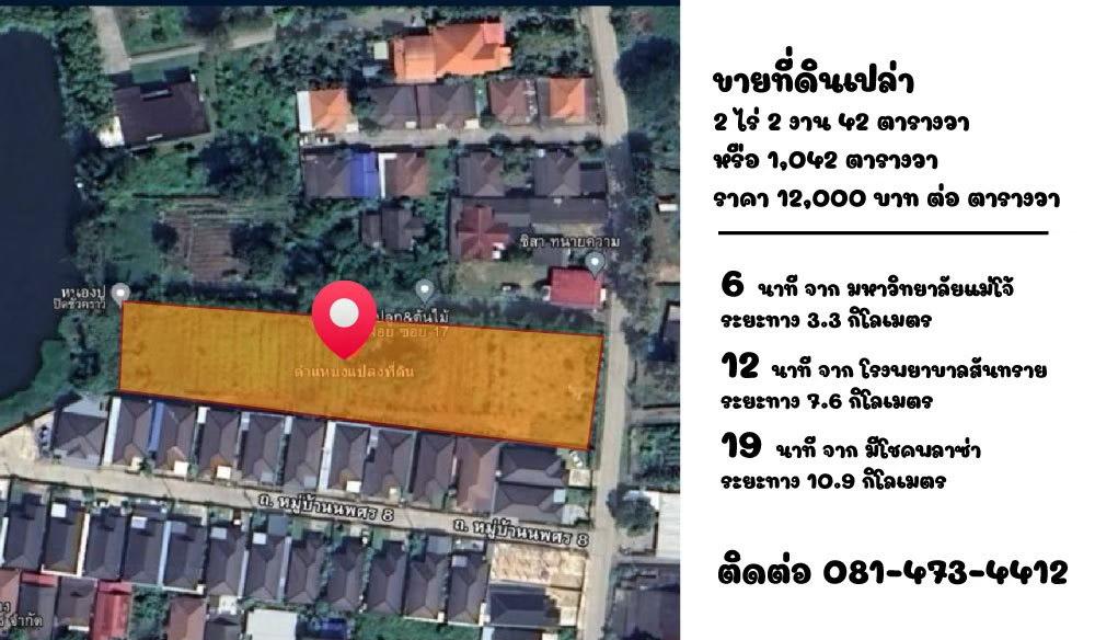 ขายที่ดิน หลัง ม.แม่โจ้ 2 ไร่ 2 งาน 42 ตารางวา