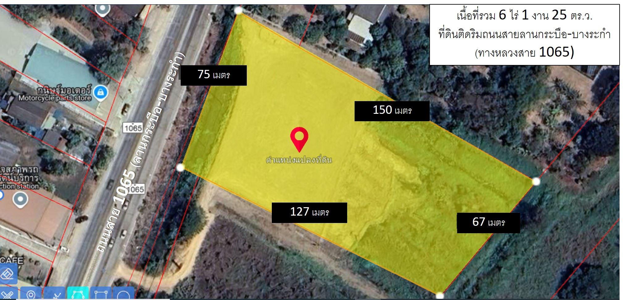 ที่ดินหน้ากว้าง 75 ม ลึก 127 ม (โดยประมาณ)
