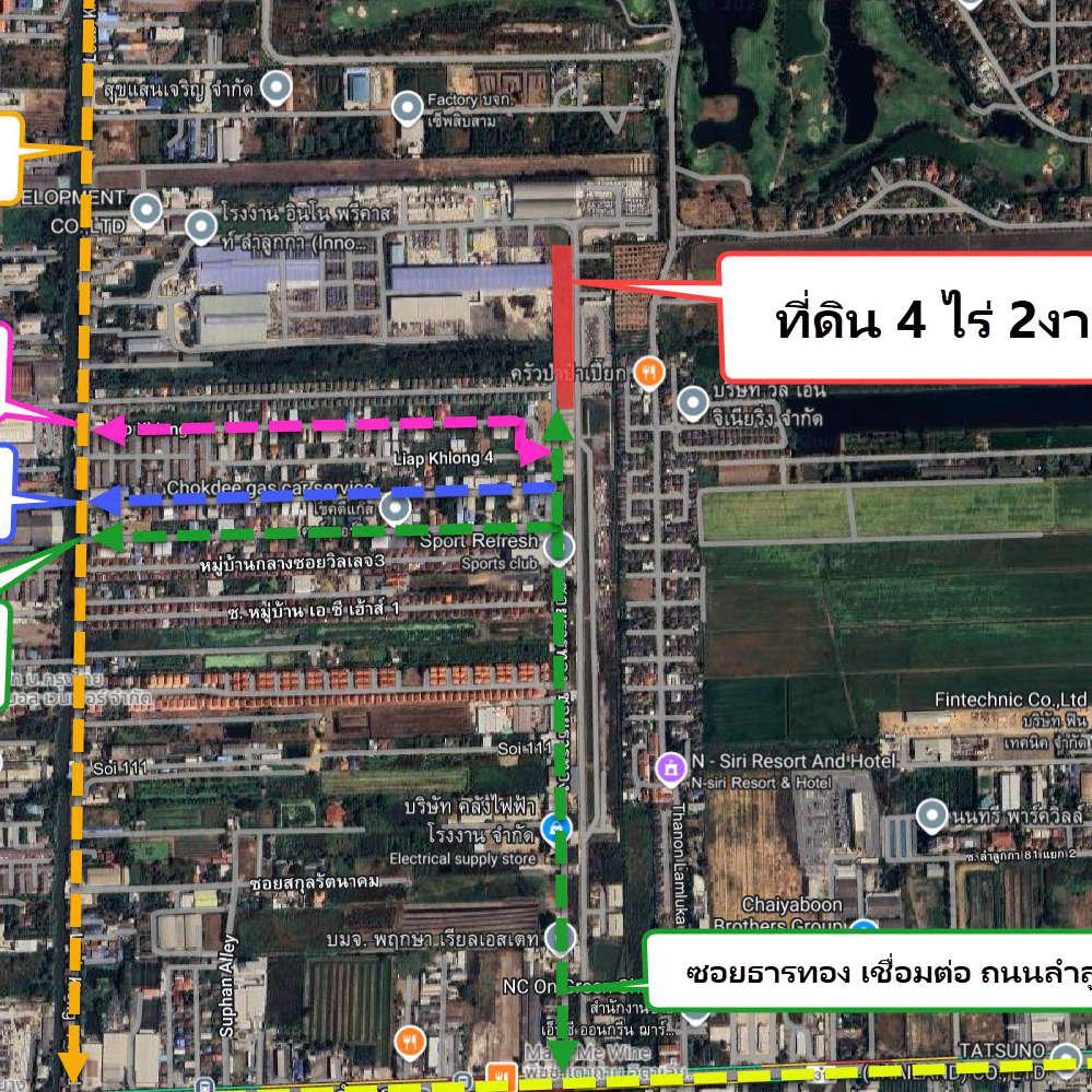 ขายที่ดินเปล่าราคาถูก ที่สวยถมแล้ว 4.5 ไร่ เข้าซอยลำลูกกา 69 (ซอยธารทอง) เป็นถนนทางลัดไปถนนรังสิต-นครนายก
