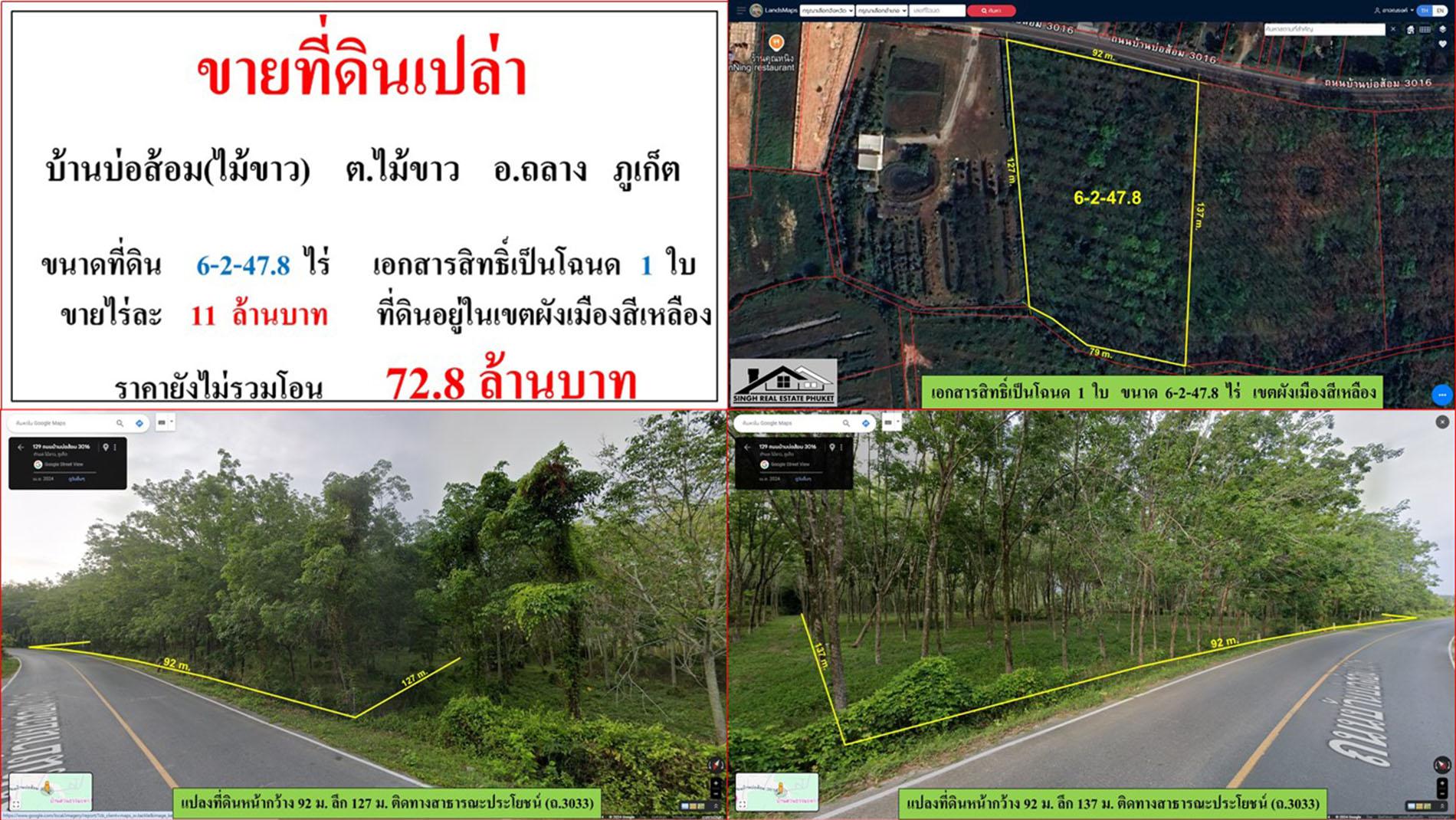 ขายที่ดินเปล่า ขนาด 6-2-47.8 ไร่ บ้านบ่อส้อม(ไม้ขาว) ต.ไม้ขาว อ.ถลาง ภูเก็ต