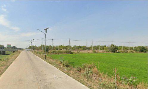 ที่ดินติดถนนคันคลองนครหลวง หน้ากว้างด้านติดถนนประมาณ 38 เมตร ยาวประมาณ 828 เมตร