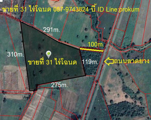 ขายที่ 31ไร่ๆละ130,000 บาท โฉนดครุฑแดง หน้ากว้าง 291 เมตร
