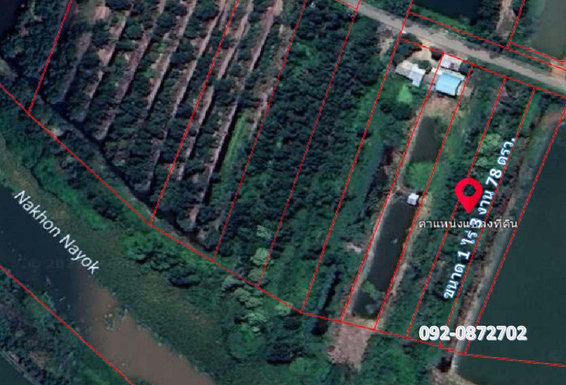 ขายที่ดินราคาถูกติดแม่น้ำนครนายก ใกล้กรุงเทพ เหมาะทำบ้านพักสวนเกษตรสำหรับพักผ่อนหลังเกษียณ