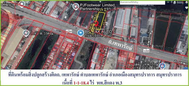 ขายด่วน ที่ดินพร้อมสิ่งปลูกสร้าง บ้าน 1 หลัง 1-1-18.4 ไร่ ติดถนนเทพารักษ์ กม.8 ฝั่งขาออก เมืองสมุทรปราการ