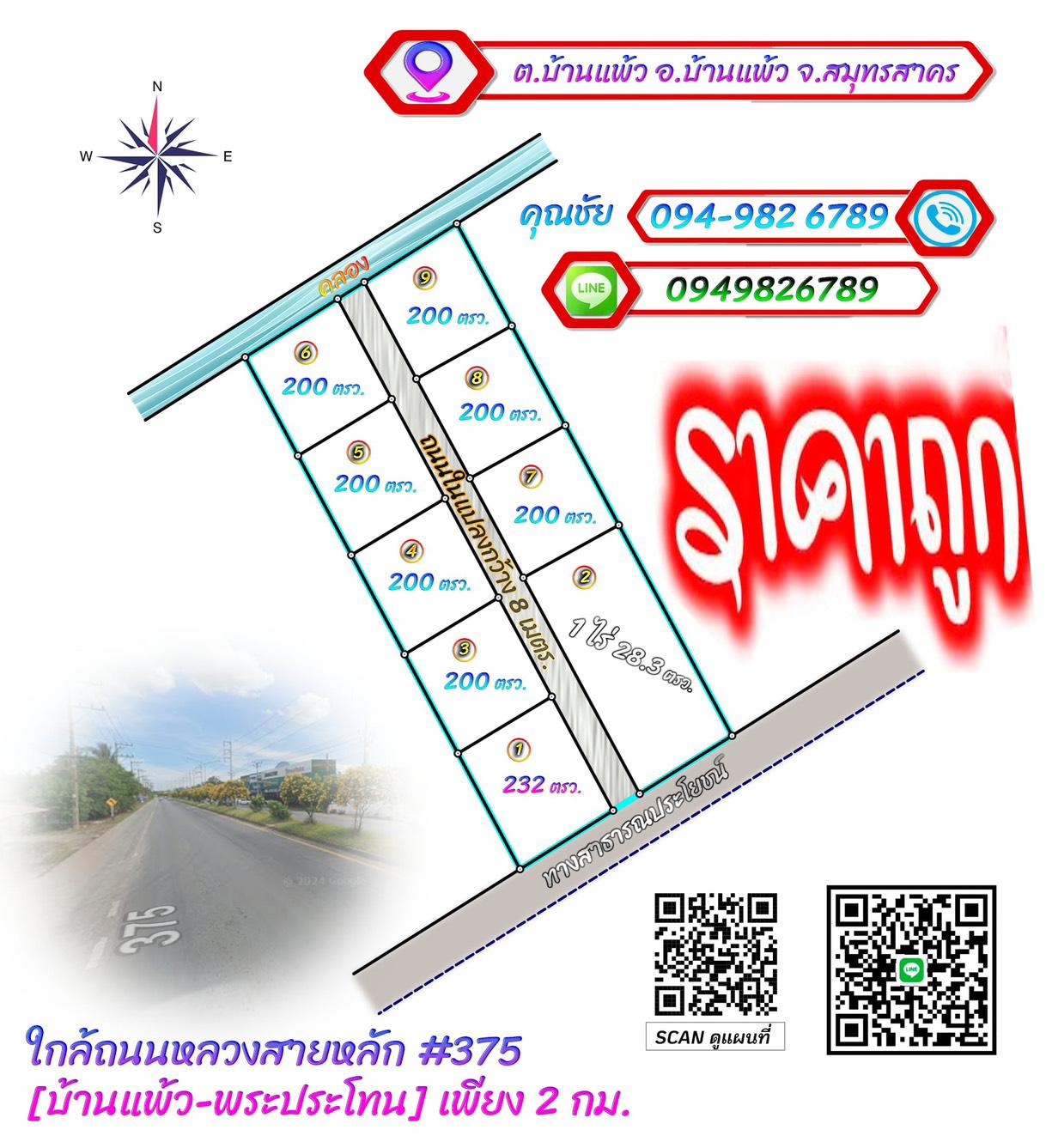 ใครที่มองที่ดินโซนใกล้ตลาดบ้านแพ้ว โรงพยาบาล ต้องแปลงนี้้เลยครับ (ขายสด&ผ่อน)