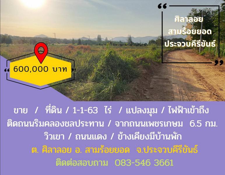 ขาย ที่ดิน 1-1-63 ราคาถูก แปลงมุม วิวเขา ติดถนนเลียบคลองชลประทาน ต.ศิลาลอย อ.สามร้อยยอด จ.ประจวบคีรีขันธ์
