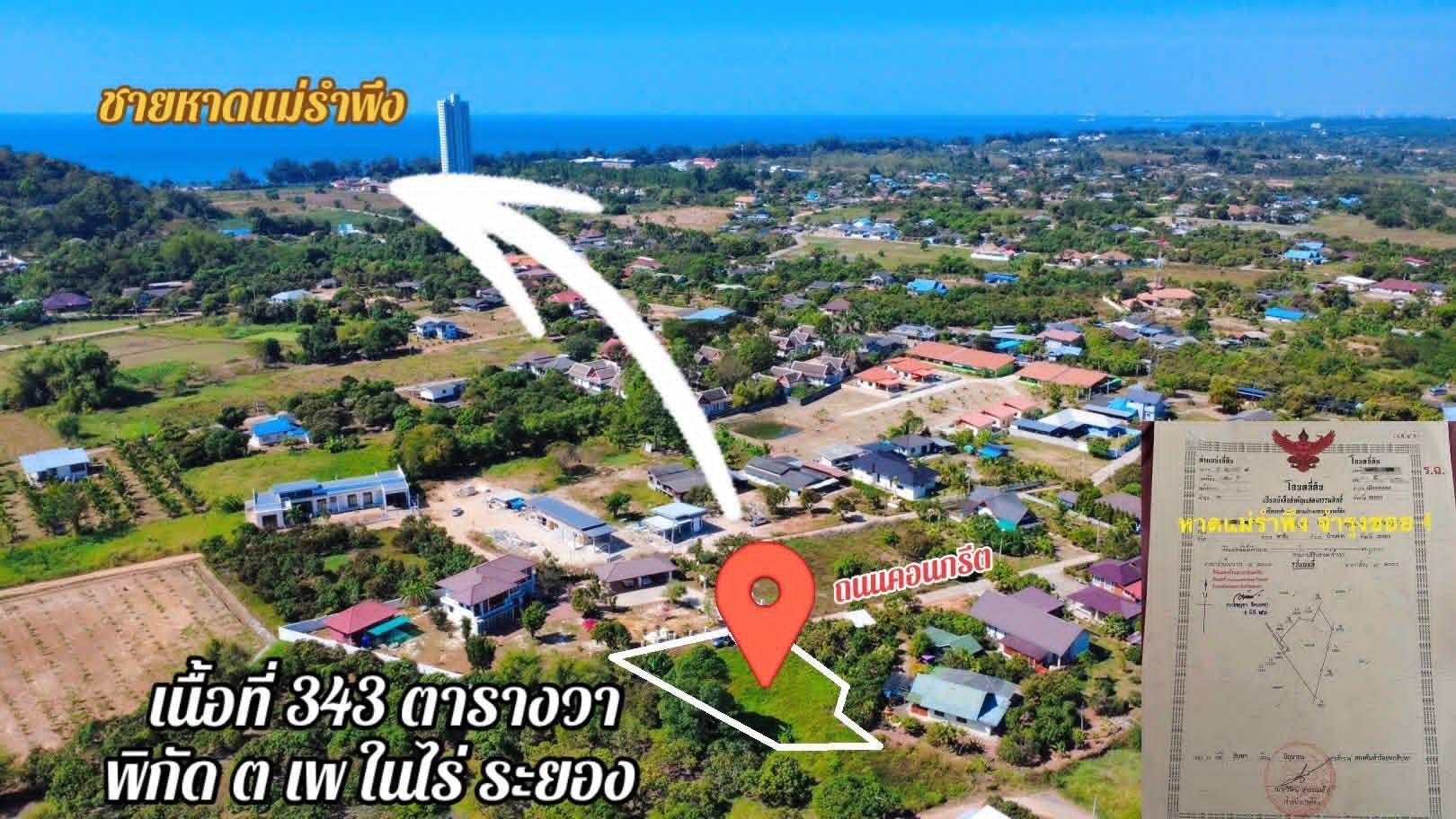 ขายที่ดินเปล่าใกล้ทะเลหาดแม่รำพึงจ.ระยองเนื้อที่343ตรว.ขายราคา3.000.000ลบ.