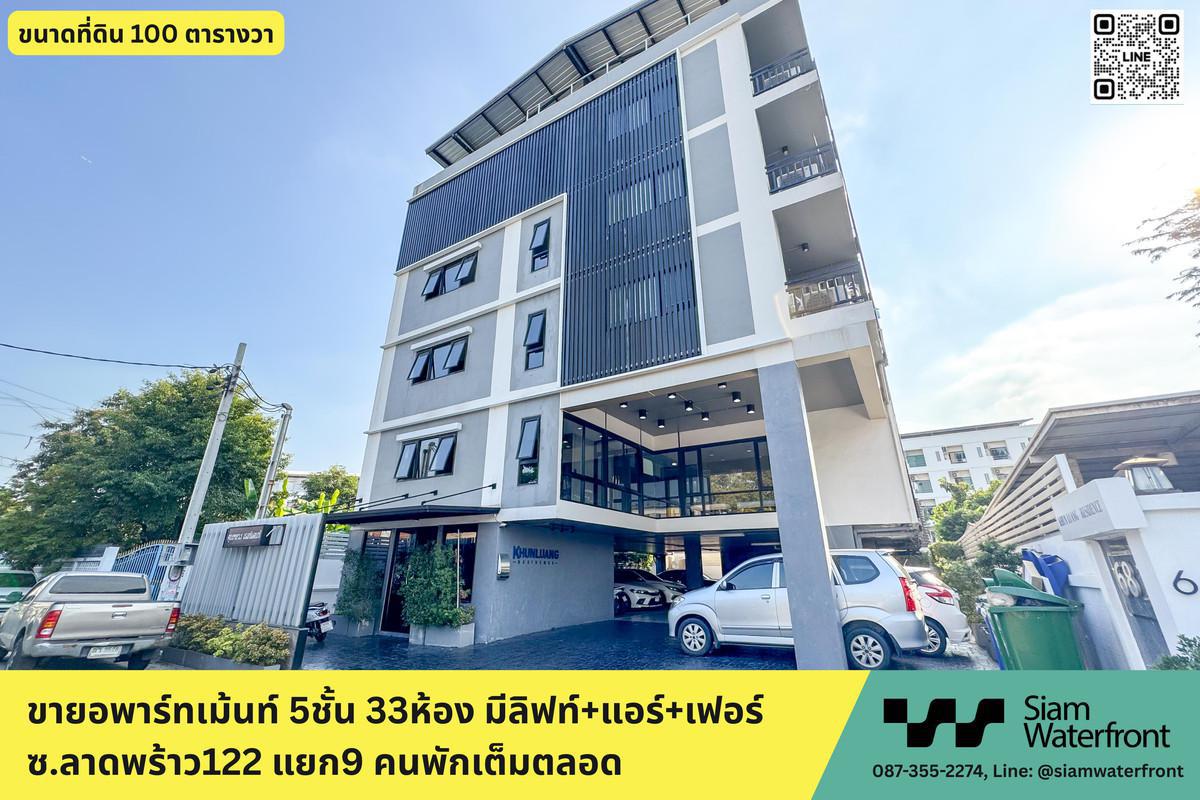 ขายด่วนอพาร์ทเม้นท์ ซ.ลาดพร้าว122 แยก9 (ซอยมหาดไทย), 5ชั้น 33ห้อง มีลิฟท์+โซล่าเซลล์+แอร์+เฟอร์ ผู้เช่าเต็มตลอด รับรายได้ทันที 1.3-1.4 แสน/เดือน ใกล้รถไฟฟ้าสายสีเหลือง