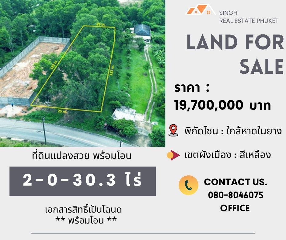 ** LAND FOR SALE ** ที่ดินเปล่า 2-0-30.3 ไร่ ( ถนนอดามัส - หาดในยาง )