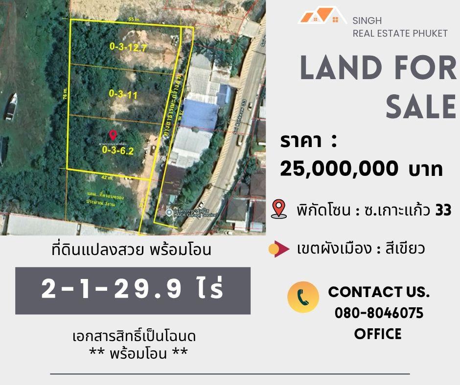 ** LAND FOR SALE ** ที่ดินเปล่า 2-1-29.9 ไร่ ( ซอยเกาะแก้ว 33 )