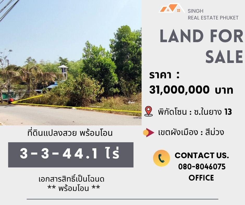 ** LAND FOR SALE ** ที่ดินเปล่า 3-3-44.1 ไร่ ( ในยาง S4 NAIYANG BEACH PHUKET )
