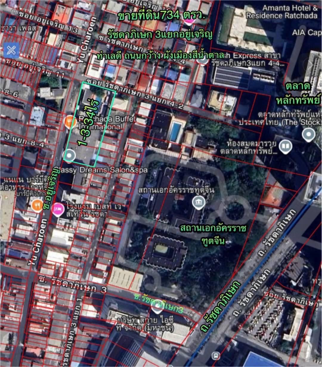 R68-056ที่ดิน 1-3-34 ไร่ ซอยรัชดาภิเษก3แยกอยู่เจริญแปลงมุม หลังสถานฑูตจีน ทำเลดี ถนนซอยกว้าง ผังเมืองสีน้ำตาล เป็นย่านชุมชนหนาแน่น เดินทางสะดวกเข้า