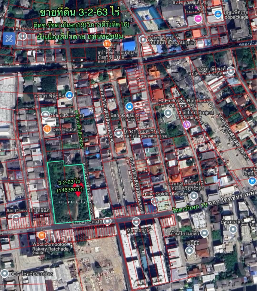 R68-62ขายที่ดินสวยรัชดา 3-2-63 ไร่ ติดรัชดาภิเษก19(วิภาวดีรังสิต16) ทำเลดีที่ดินถมแล้ว ผังเมืองสีน้ำตาล ถนนเมนกว้าง8เมตร หน้ากว้างติดถนน 58เมตร ห่างจากถนนรัชดาภิเษก700เมตร ห่างจากถนนวิภาวดีรังสิต 900 เมตร เดินทางสะดวก