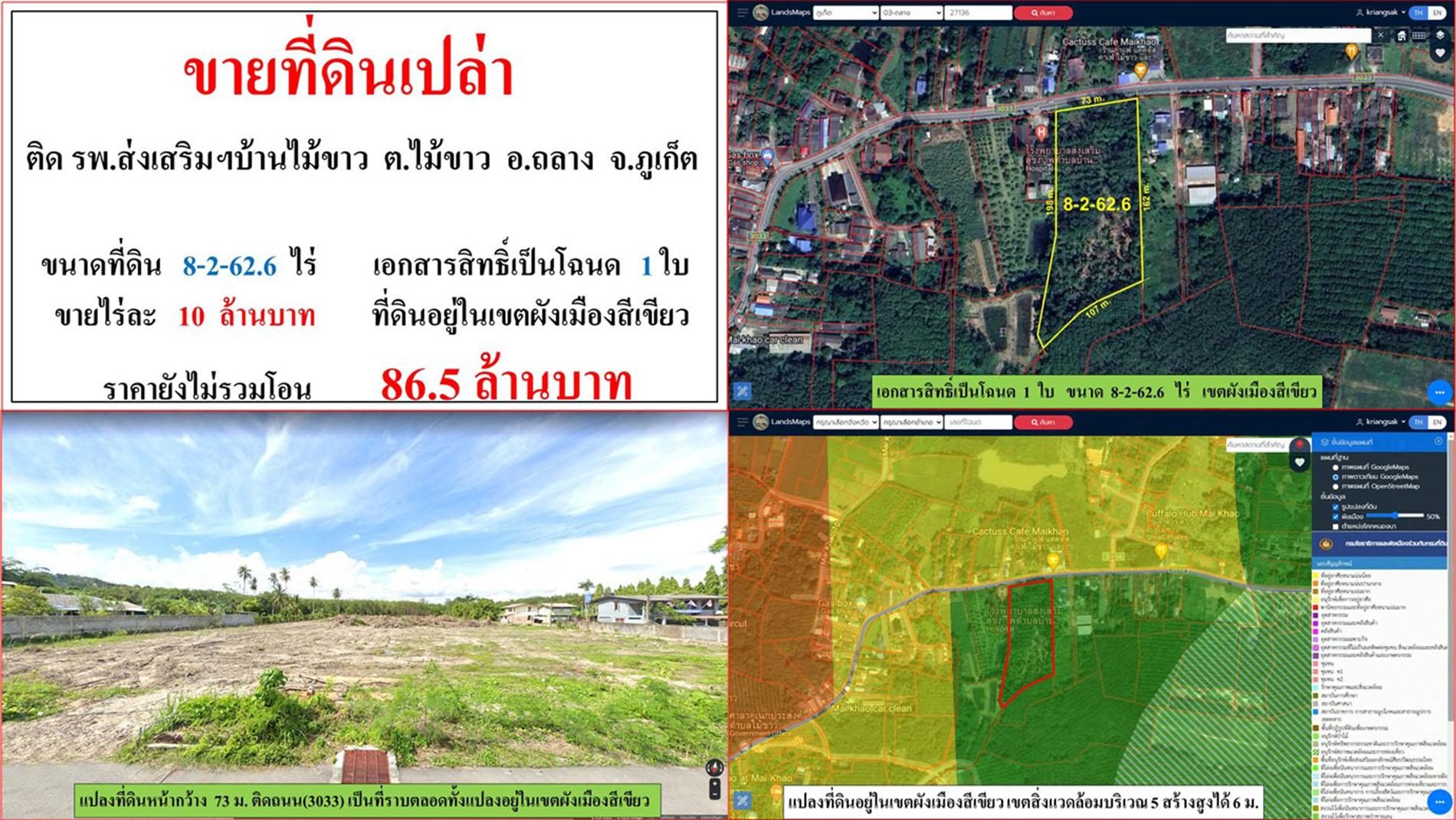 ขายที่ดินเปล่า ขนาด 8-2-62.6 ไร่ ติดโรงพยาบาลส่งเสริมฯ บ้านไม้ขาว ต.ไม้ขาว อ.ถลาง ภูเก็ต