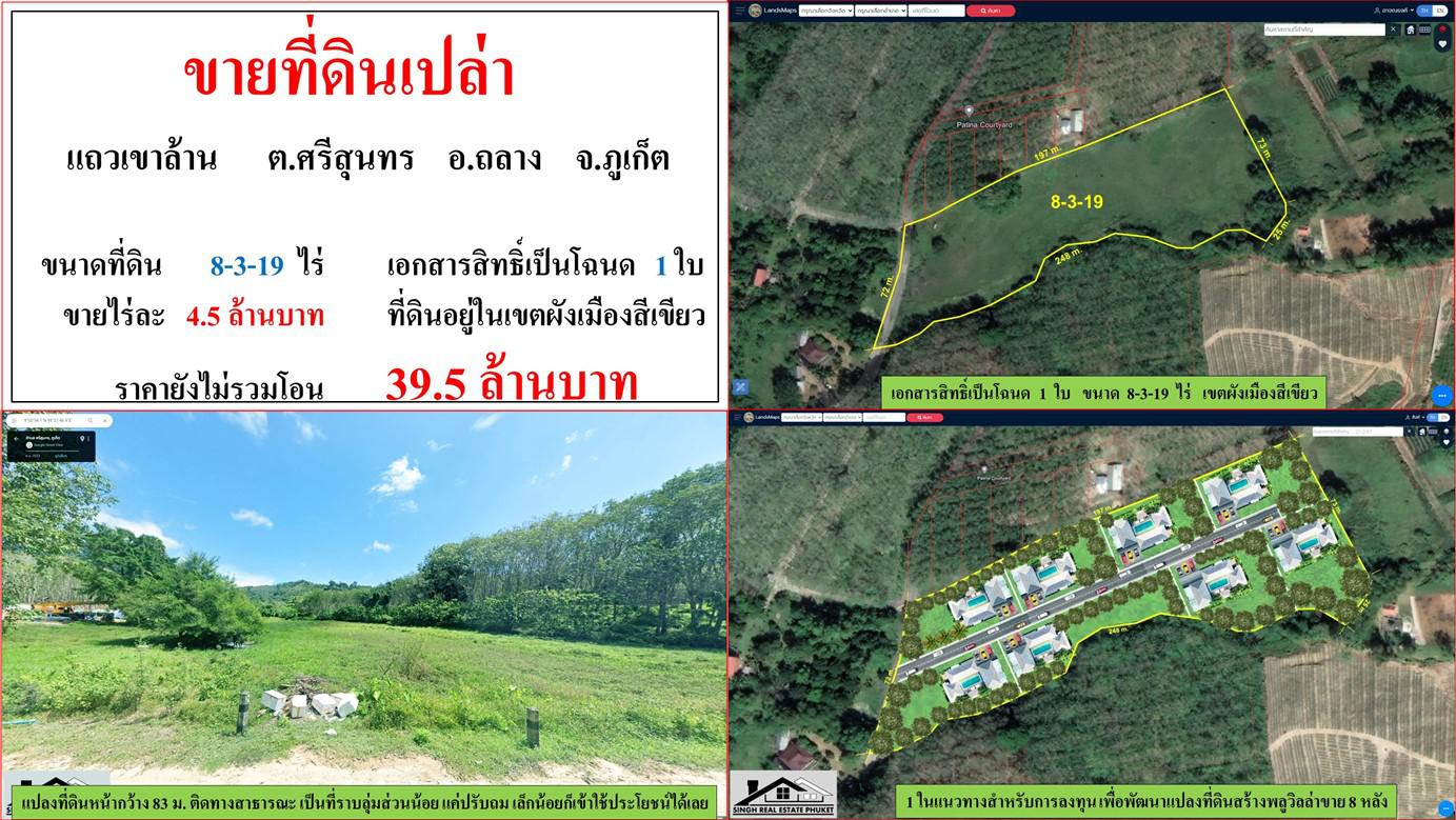ขายที่ดินเปล่า ขนาด 8-3-19 ไร่ แถวเขาล้าน ต.ศรีสุนทร อ.ถลาง ภูเก็ต