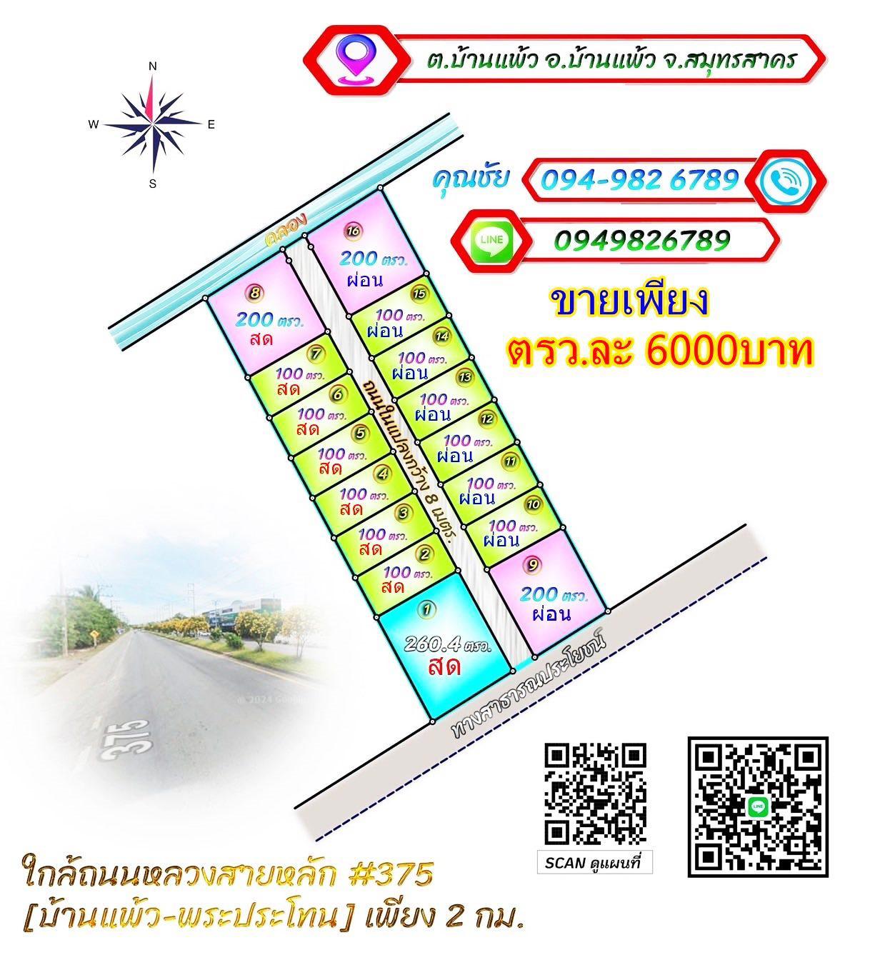 ขายที่ดินทำเลดี ใกล้ตลาดบ้านแพ้ว โรงพยาบาล ขายเพียง ตรว. ละ6000บาท (เงินสด&ผ่อน)
