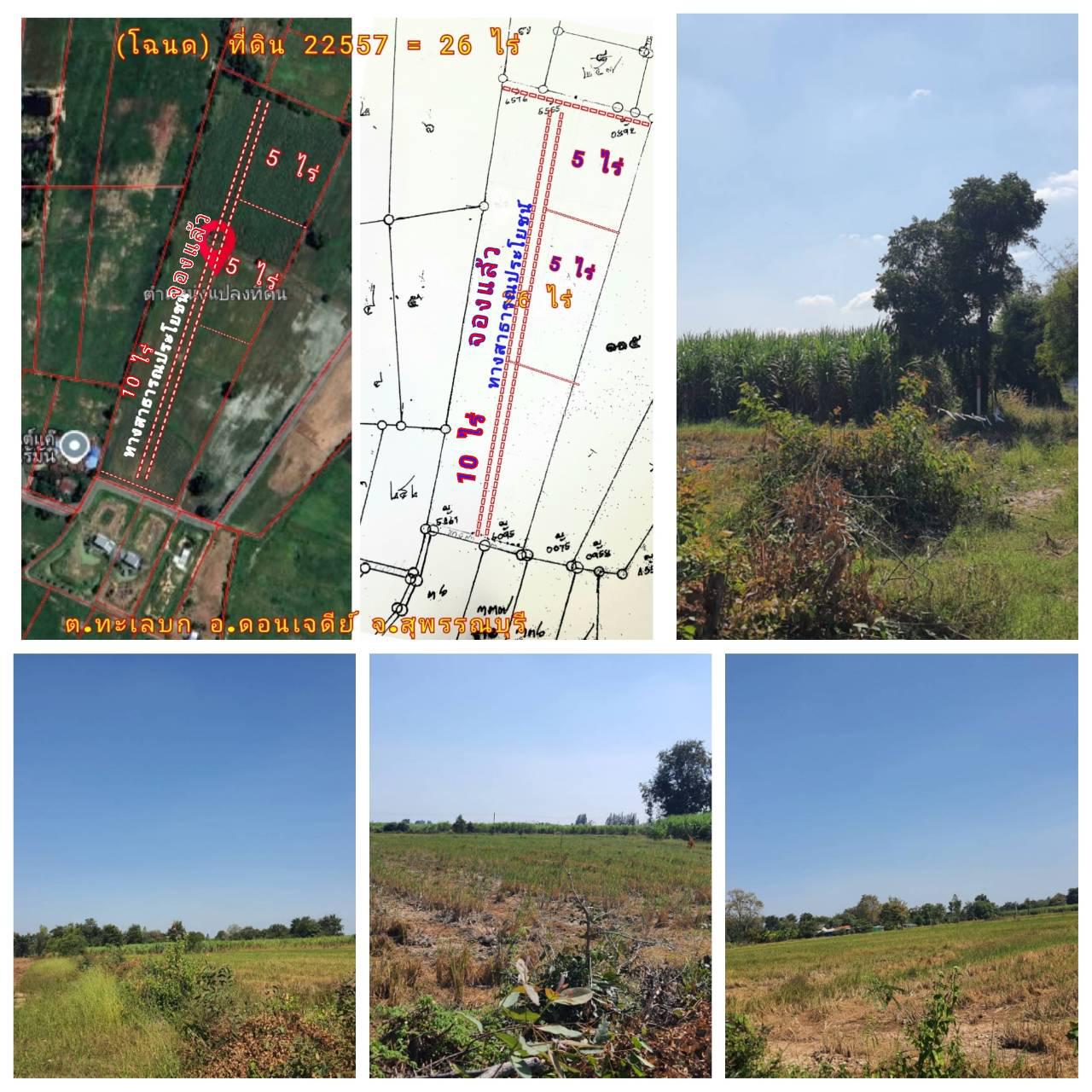 (โฉนด) ที่ดินแบ่ง 5-10 ไร่ๆละ 190,000 บ. (เหมาะทำไร่นา สวนผสม ทำการเกษตร) ทางถนนหินคลุก 8 ม. ไฟฟ้า น้ำประปา ต.ทะเลบก อ.ดอนเจดีย์ จ.สุพรรณบุรี