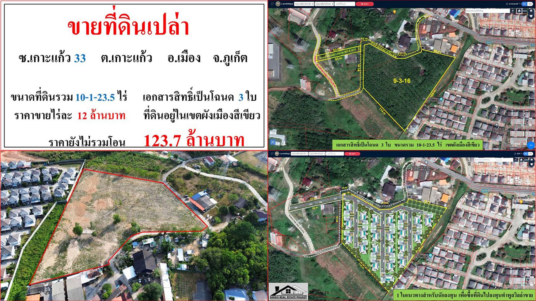 ขายที่ดินเปล่า ขนาด 10-1-23.5 ไร่ ซ.เกาะแก้ว 33 ต.เกาะแก้ว อ.เมือง ภูเก็ต