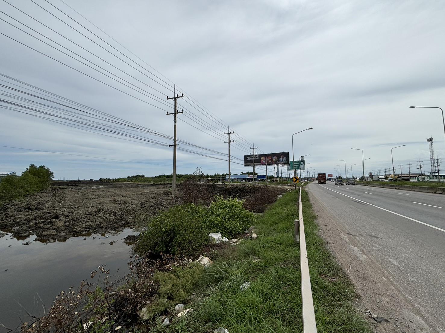ขายที่ดิน7ไร่1งาน23ตารางวา ถมแล้ว ติดถนนพระราม2ขาออก กม.48 หน้ากว้าง50เมตร เหมาะสร้างโรงงาน โกดัง ปั้ม ที่พักรถ
