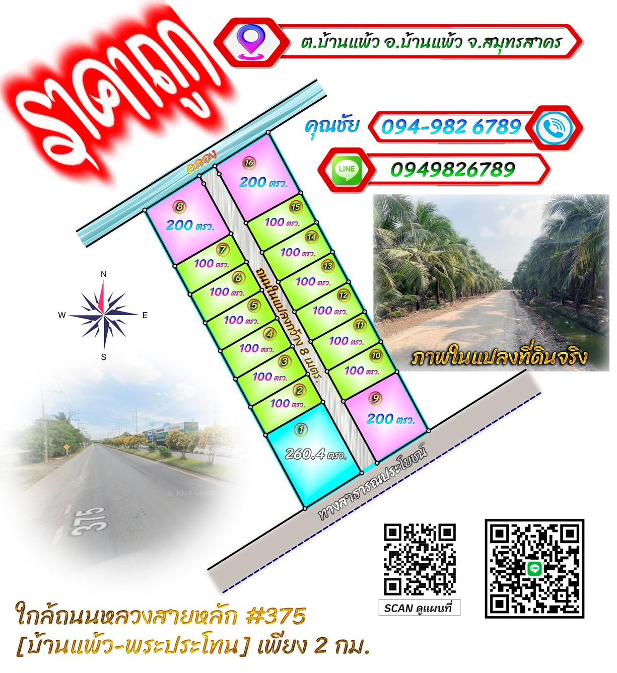 -ที่ดินเข้าจากถนนใหญ่บ้านแพ้ว-พระประโทน เพียง 2 กม เท่านั้นครับ