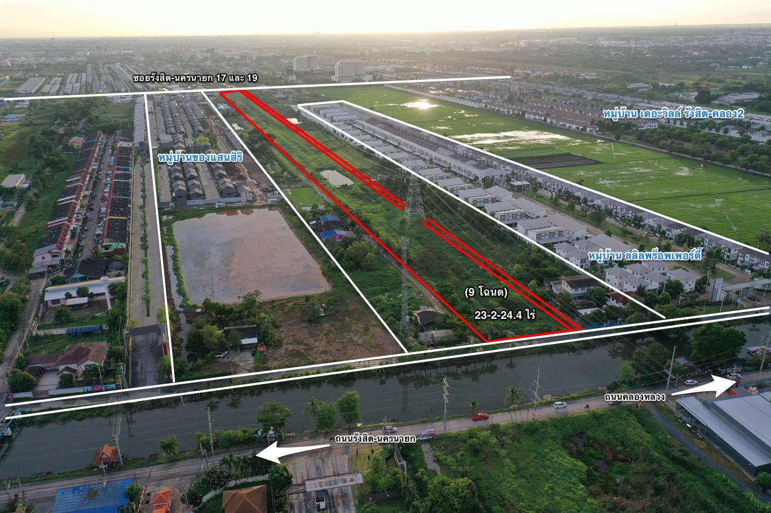 ขายที่ดิน 23 ไร่ ถนนรังสิต-นครนายก คลอง2 อ.คลองหลวง จ.ปทุมธานี