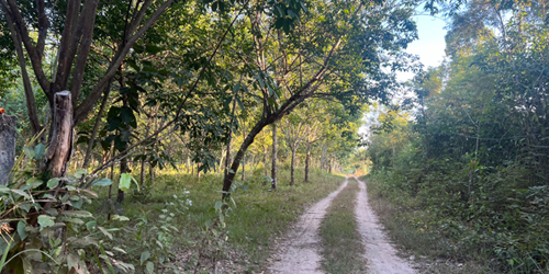 ด้านหน้าสวน ติดถนนยางมะตอยเล็กๆ