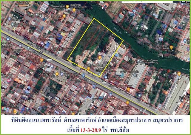 ขายที่ดินทำเลทอง แปลงสวย 13-3-28.9 ไร่ ติดถนนเทพารักษ์ ใกล้สถานี MRT ศรีเทพา เหมาะทำจัดสรร ตึกสูง อาคารสำนักงาน