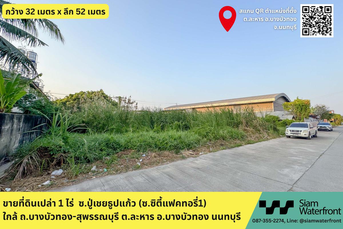 ขายด่วนที่ดินเปล่า, 1ไร่ ซ.ปู่เชยธูปแก้ว(ซ.ซิตี้แฟคทอรี่1) ใกล้ ถ.บางบัวทอง-สุพรรณบุรี ต.ละหาร อ.บางบัวทอง นนทบุรี