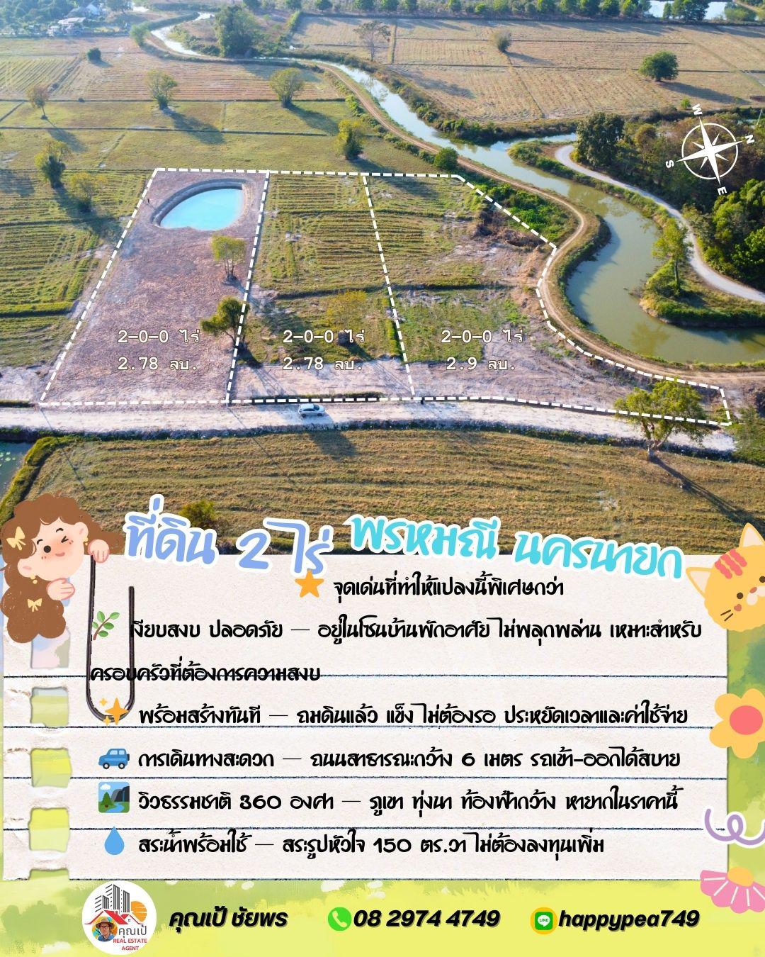 ที่ดิน 2 ไร่ ปลูกบ้านสวน ทำเลสงบ วิวภูเขา ต.พรหมณี นครนายก