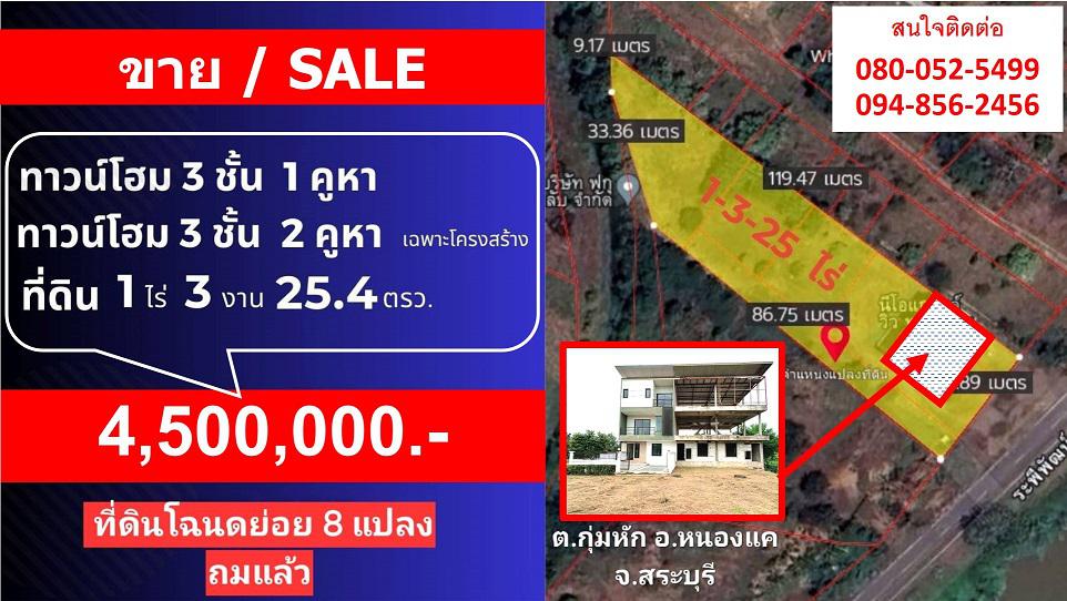 ที่ดินพร้อมทาวน์โฮม 3ชั้น 3คูหา หนองแค สระบุรี ที่ดินถมแล้ว เลียบคลองระพีพัฒน์