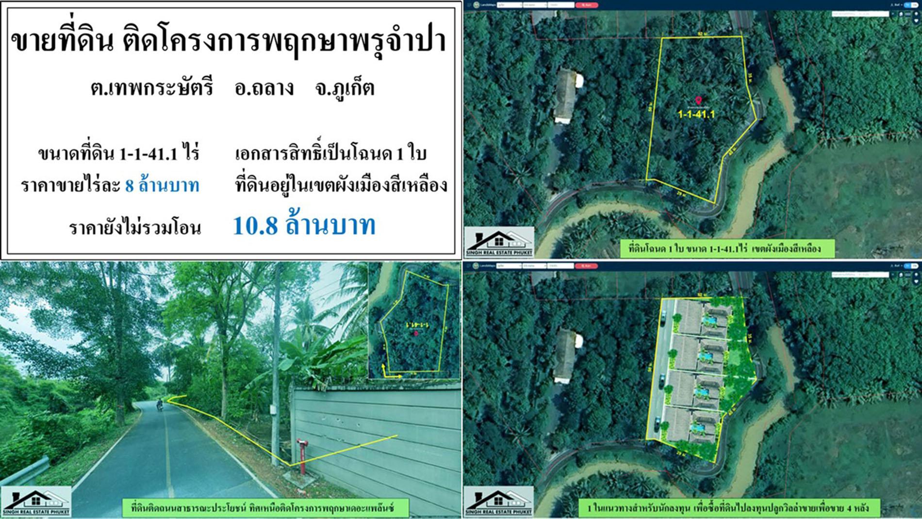 ขายที่ดินเปล่า 1-1-41.3ไร่ ติดม.พฤกาาเดอะแพล๊นซ์-ถลาง โฉนด1ใบ ผังเขียว ***ไร่8ล้าน***
