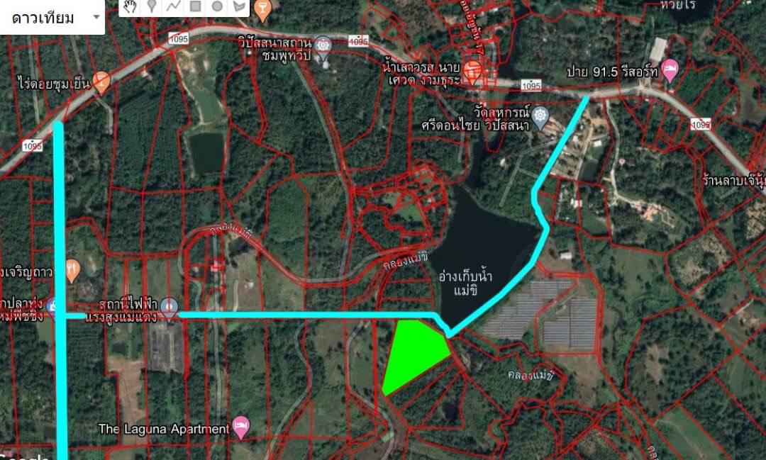 ขนาดที่ดิน 12-1-87 ไร่ (ที่ดินหน้ากว้างติดถนนเกือบ 200 ม. ตลอดแนว)