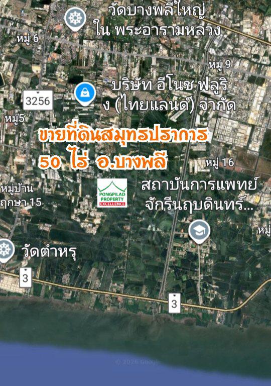 ขายที่ดินสมุทรปราการ 50 ไร่ ละ 4 ล้าน บางพลี หน้าติดถนน หลังติดคลอง