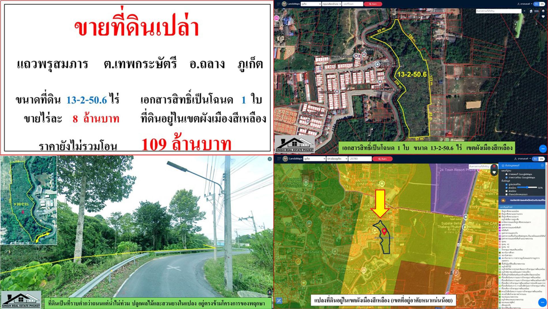 ขายที่ดินเปล่า ขนาด 13-2-50.6 ไร่ แถวพรุสมภาร ต.เทพกระษัตรี อ.ถลาง ภูเก็ต