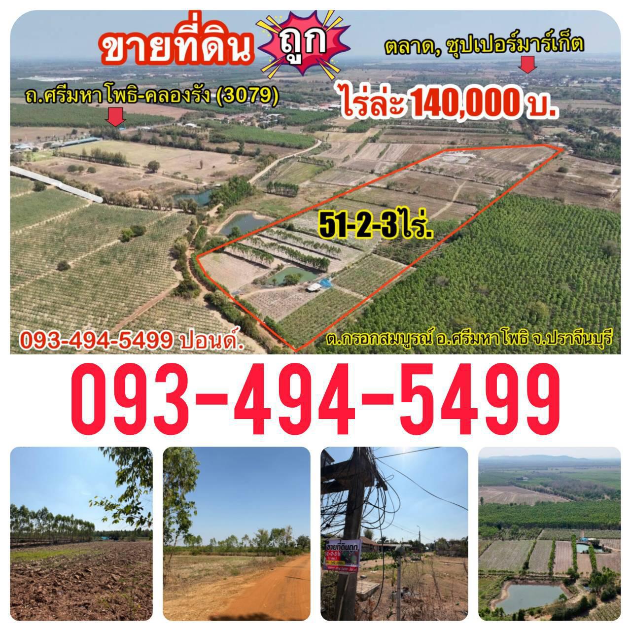 ที่ดินถูกปราจีนบุรี ใกล้เทศบาลกรอกสมบูรณ์ (หลังสนามไดร์ฟกอล์ฟ 304) |ไร่ล่ะ 140,000 บาท ( 51-2-3 ไร่.) ยกแปลง 7.2 ลบ. | ต.กรอกสมบูรณ์ อ.ศรีมหาโพธิ จ.ปราจีนบุรี