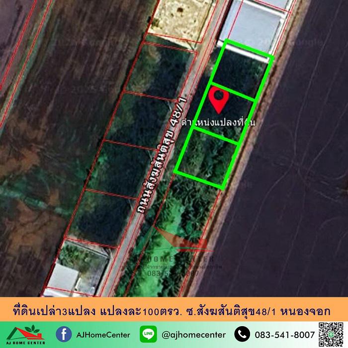 ขายถูก ที่ดินเปล่า3แปลง แปลงละ100ตรว. ซ.สังฆสันติสุข48/1 หนองจอก แบ่งขายได้