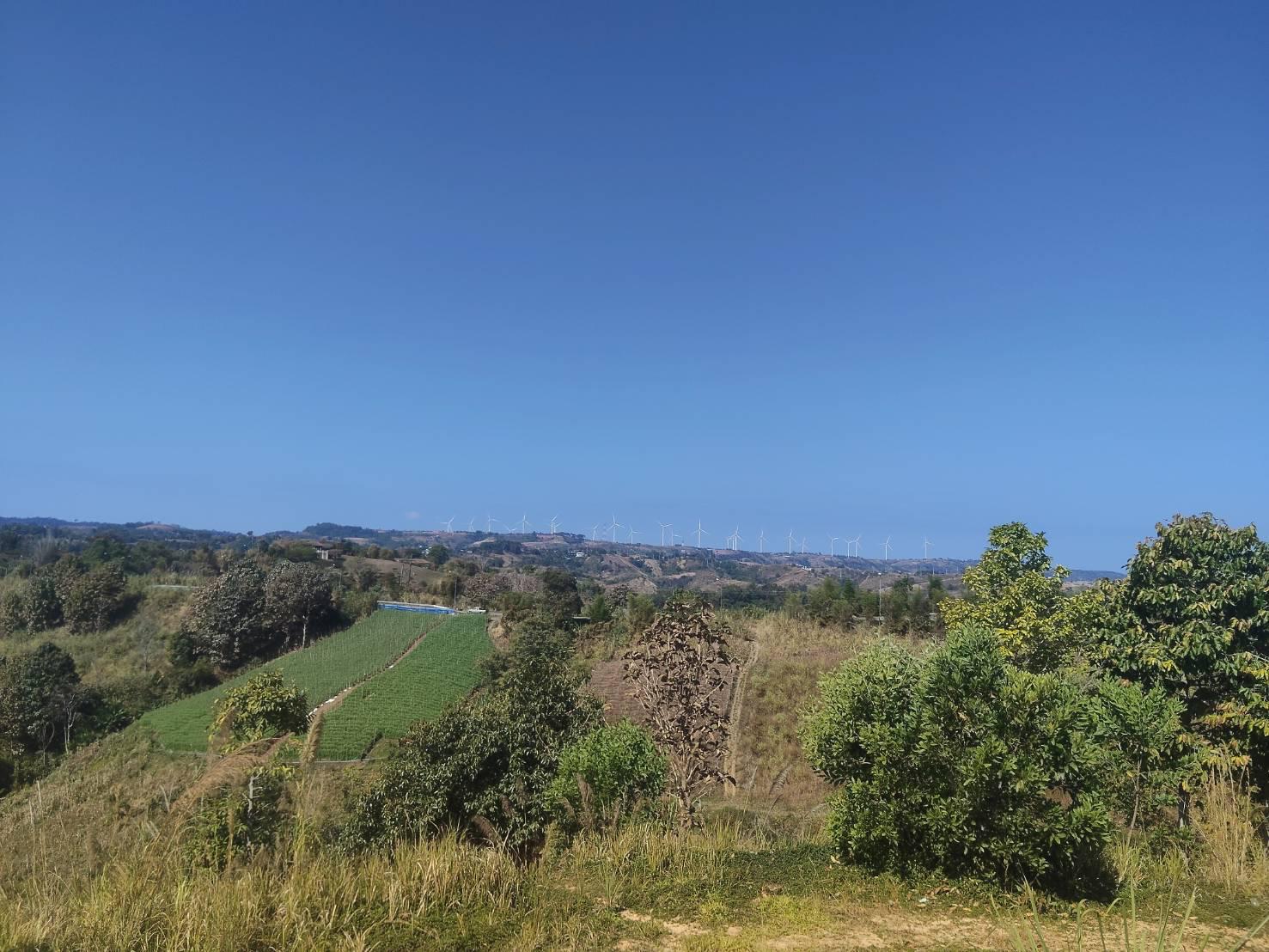 วิวไกลมองเห็นกังหันลม ผาตัด วัดผาซ่อนแก้ว