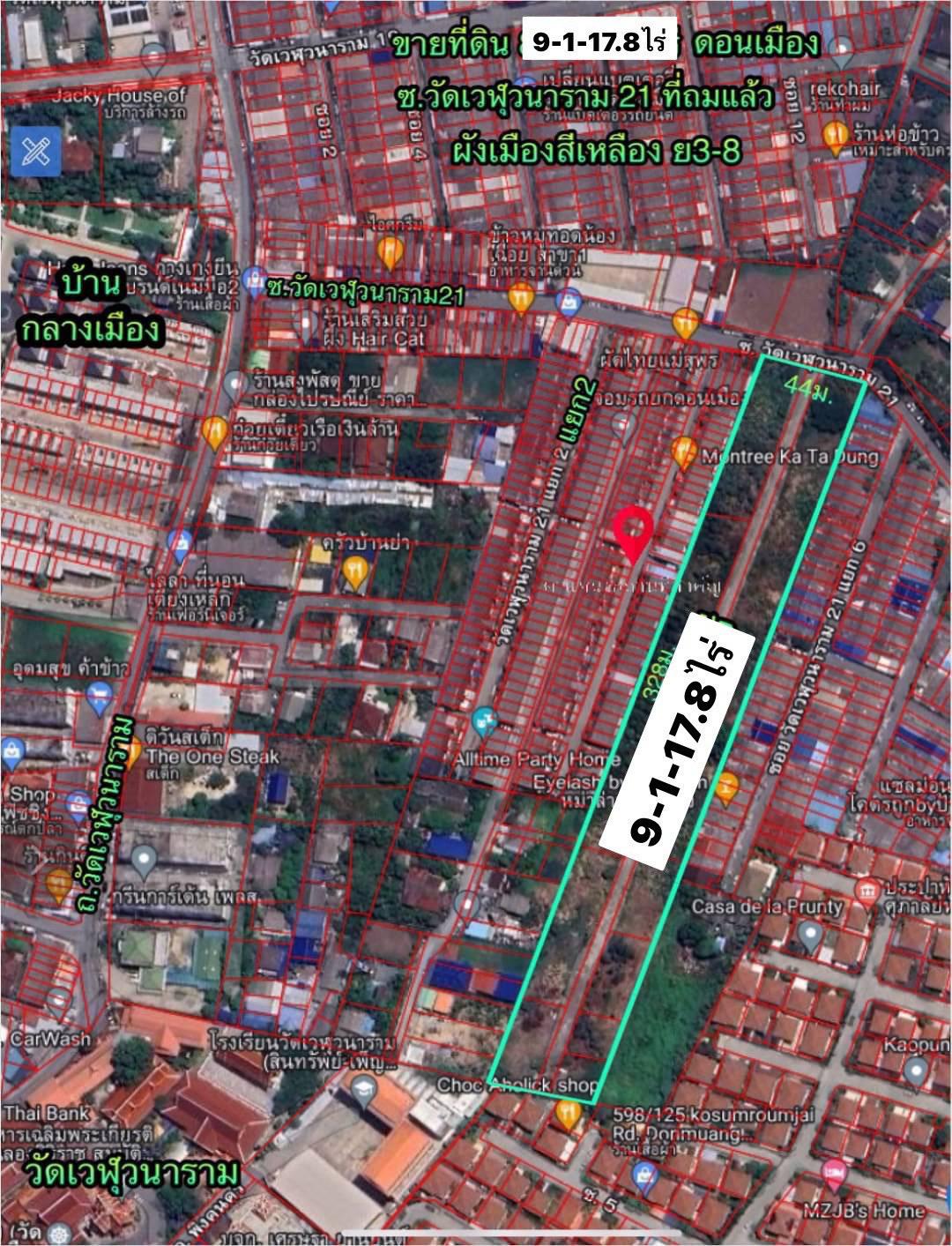 R69-045ที่ดิน 9-1-17.8 ไร่ (3,717.8 ตรว) ดอนเมือง วัดเวฬุวนาราม ซอยวัดเวฬุวนาราม21 ที่ดินถมแล้ว ถนนหน้าที่ดินกว้าง 8 เมตร ใกล้ตลาด อยู่ในแหล่