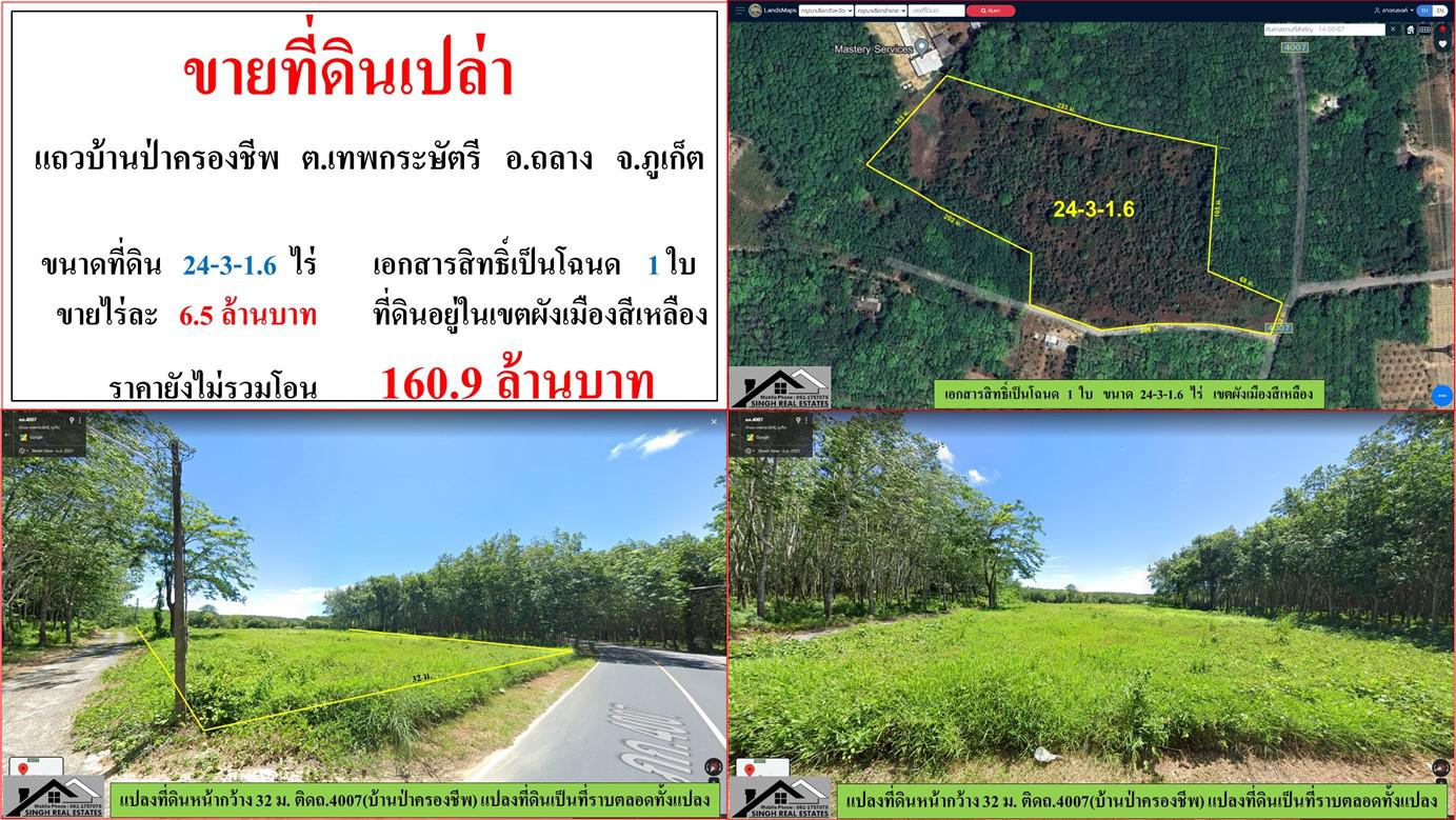 ขายที่ดินเปล่า ขนาด 24-3-1.6 ไร่ แถวบ้านป่าครองชีพ ต.เทพกระษัตรี อ.ถลาง ภูเก็ต
