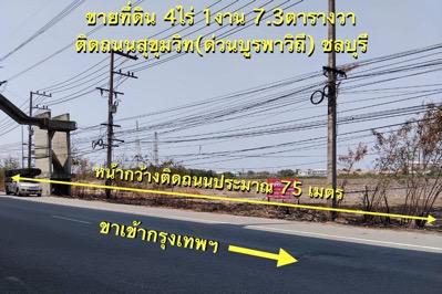 ขายที่ดินติดถนนสุขุมวิท 4ไร่กว่าๆ คลองตำหรุ เมืองชลบุรี ที่สวย ราคาคุยง่าย